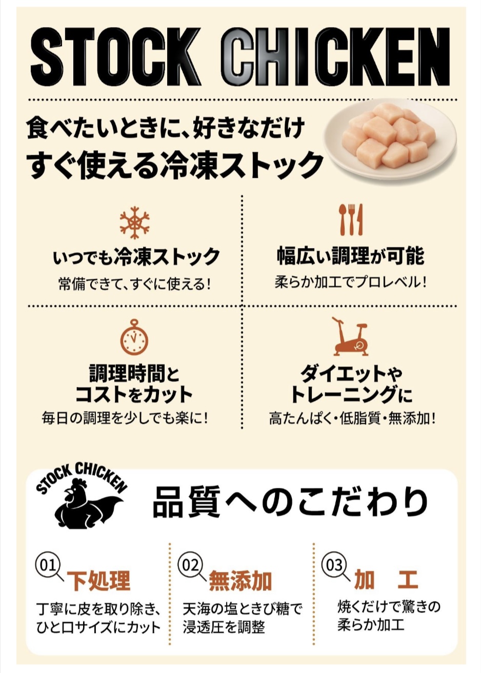 忙しい毎日、手間なく「時短」で調理できるのがストックチキン。