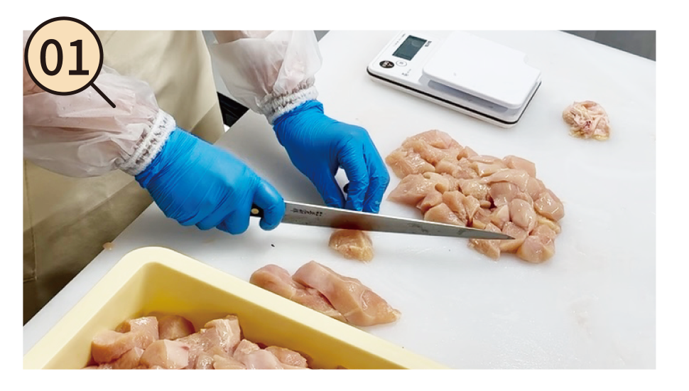 丁寧に皮を取り除き、一口サイズにカットしました。