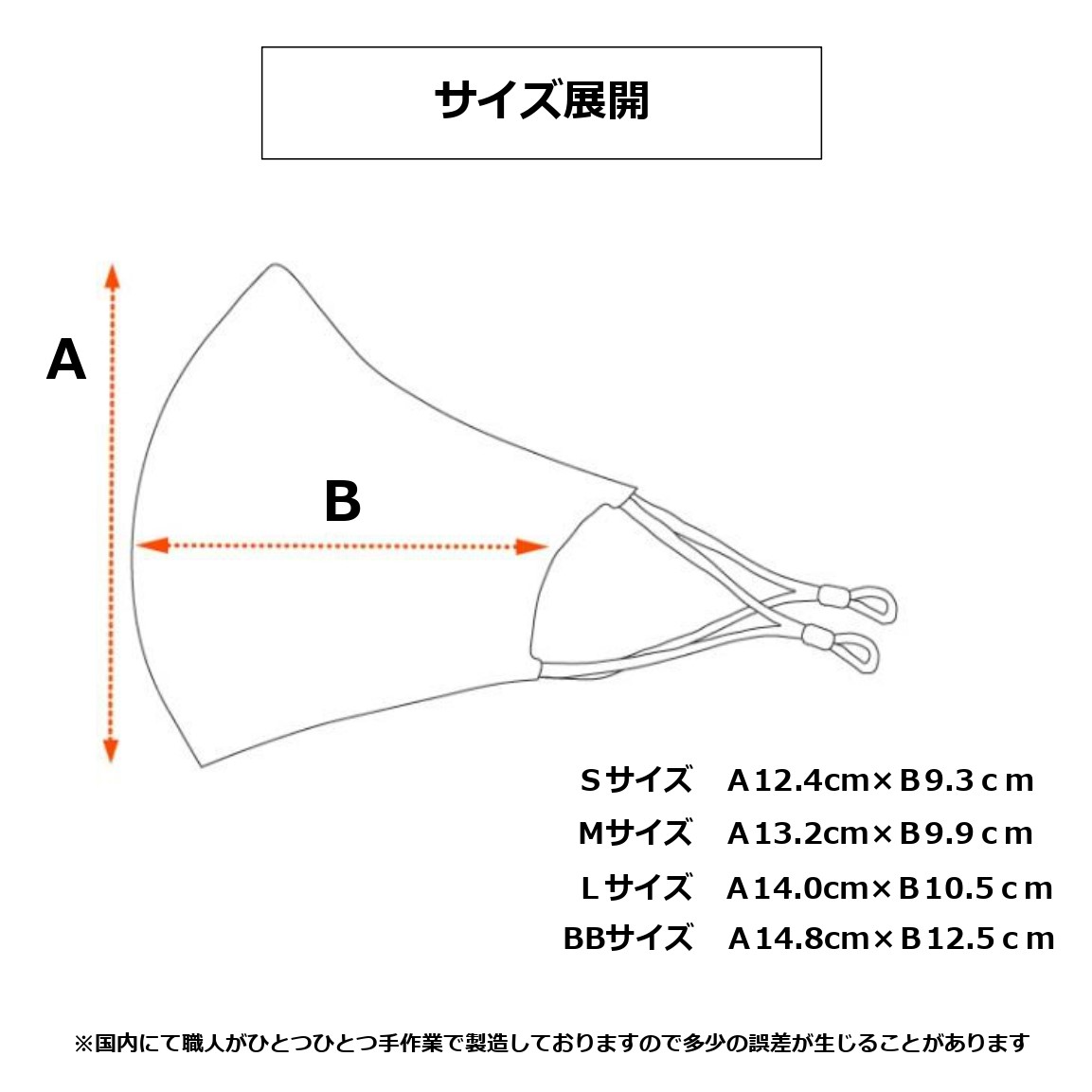 ひとつひとつ手作りで生産していますので1mm~2mm程度の誤差が生じることがあります。